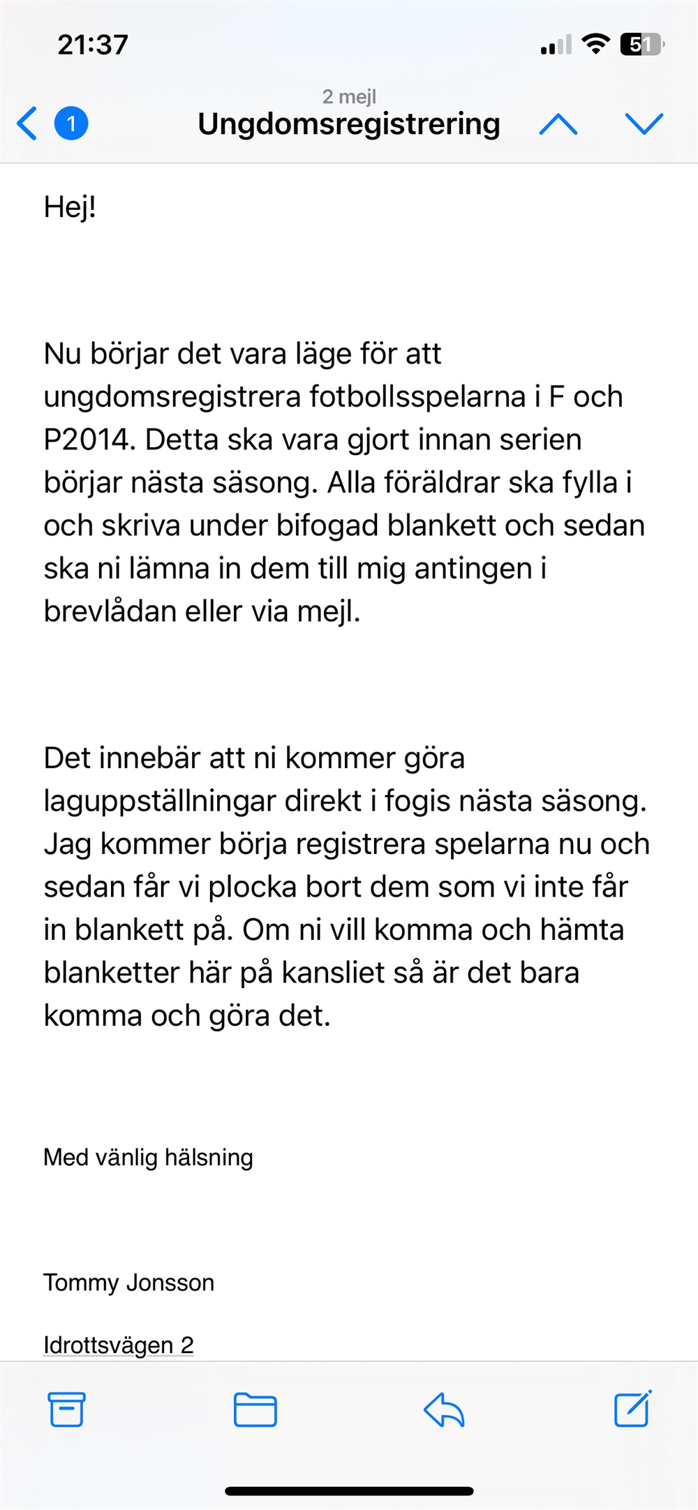 Viktig information från kansliet. Man ska registrerar spelare i ett system som vi använder oss av när vi spelar seriematcher. Har man inte fyllt i denna så finns inte barnet med=kan inte spela.